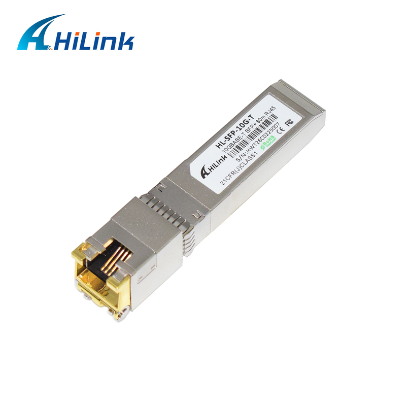 HL-SFP-10G-T-80 Copper Small Form Pluggable (SFP) transceivers are high-performance, cost-effective modules compliant with 10G Ethernet and 10GBASE-T standards as specified in IEEE 802.3az. These modules support 10Gbps data rates up to 80 meters over unshielded twisted-pair category 6a/7 cables. The module provides standard serial ID information compliant with SFP+ MSA, accessible via the 2-wire serial EEPROM protocol at address A0h.